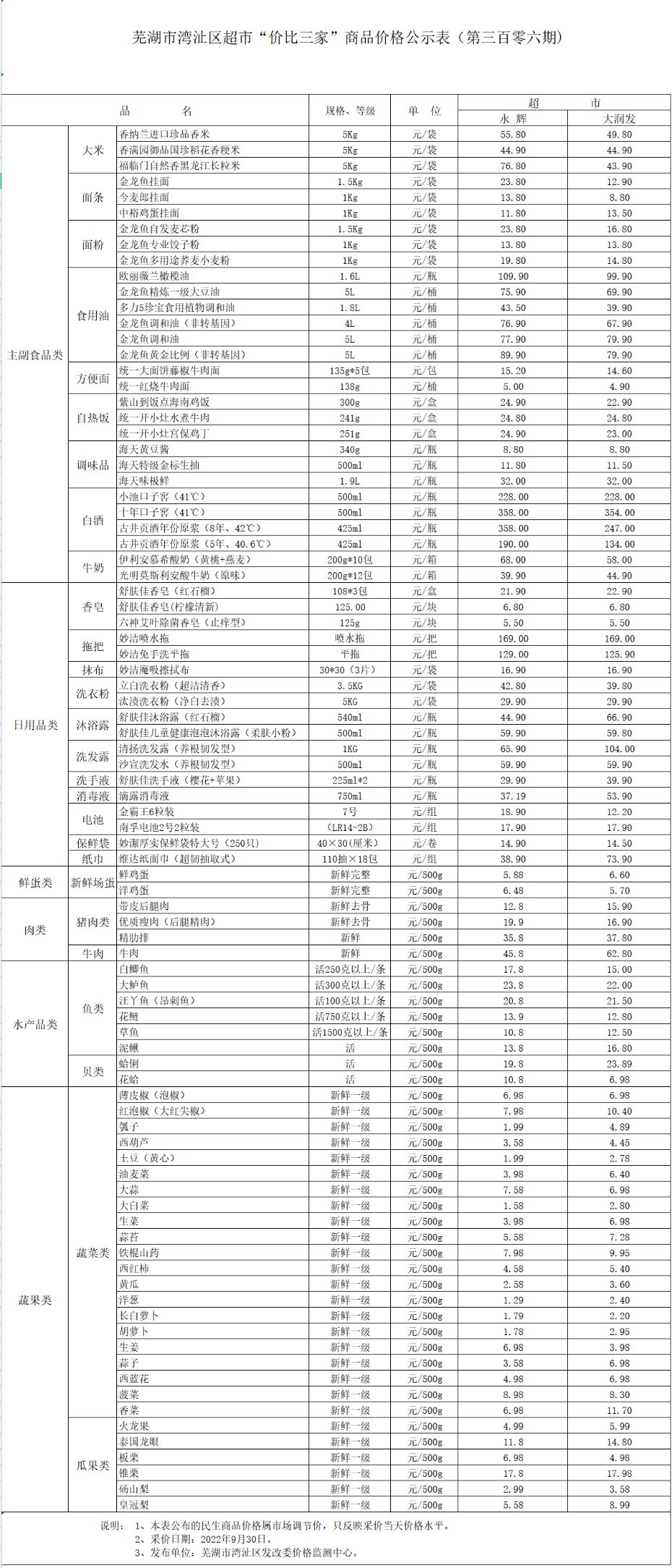 365bet娱乐注册_世界杯365体育_beat365最新版2022湾沚区超市“价比三家”商品价格公示表(第三百零六期)