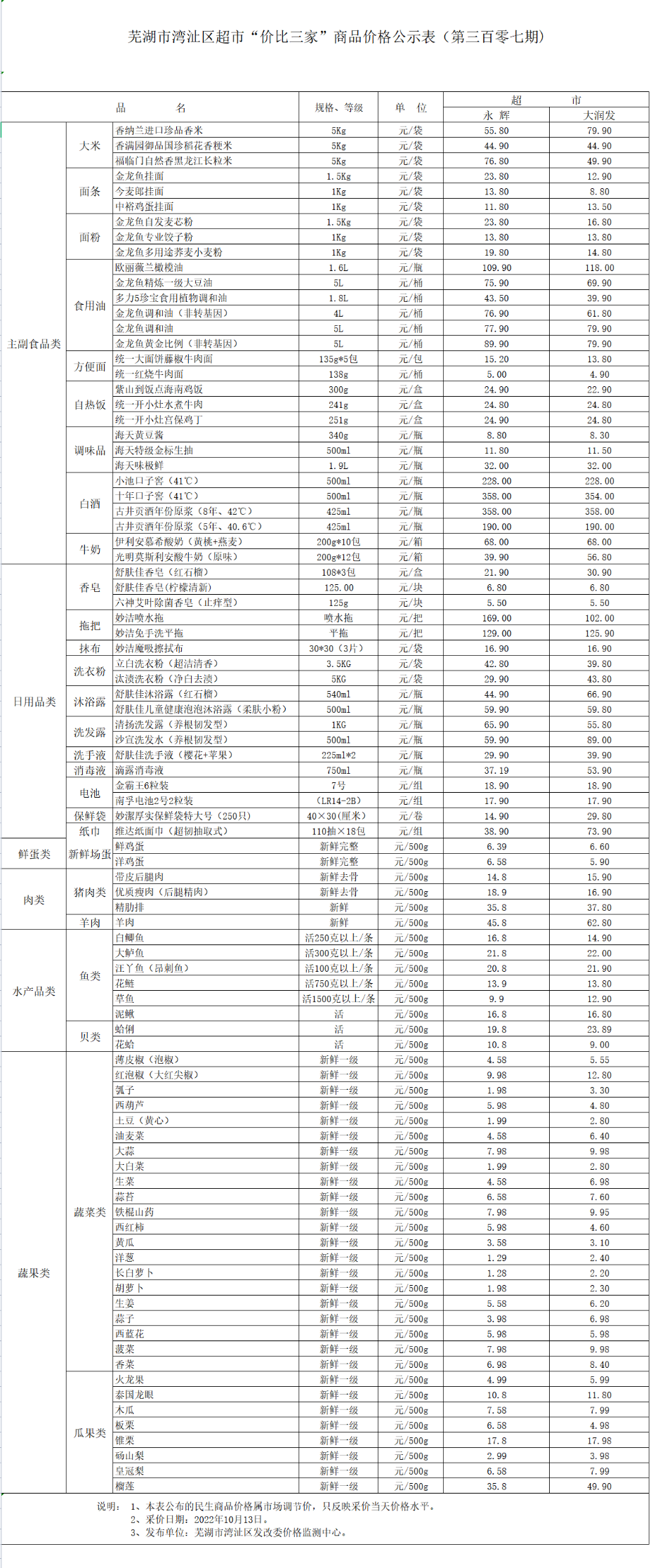 365bet娱乐注册_世界杯365体育_beat365最新版2022湾沚区超市“价比三家”商品价格公示表(第三百零七期)
