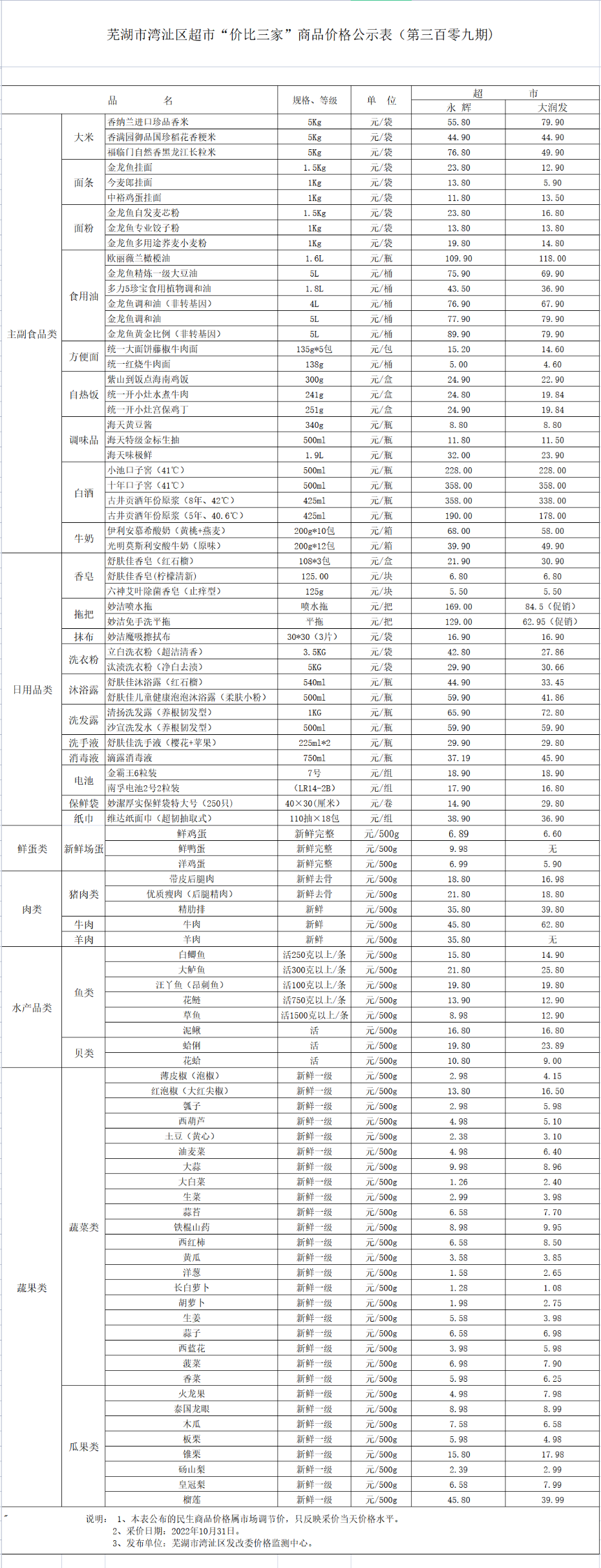 365bet娱乐注册_世界杯365体育_beat365最新版2022湾沚区超市“价比三家”商品价格公示表(第三百零九期)