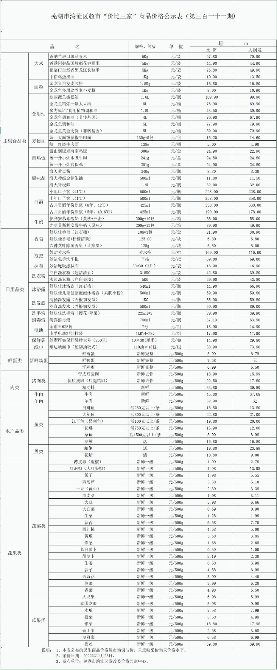 365bet娱乐注册_世界杯365体育_beat365最新版2022湾沚区超市“价比三家”商品价格公示表(第三百一十一期)